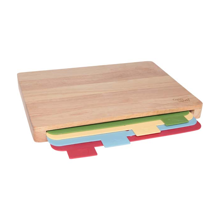 Planche à découper hévéa avec 4 plaques flexibles